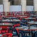Technically, it’s a colour study wrapped in structure. The teal wall competes with the red and purple shirts — not complementary, but jarring in a way that fits the mood. I exposed for the mid-tones, pulling enough out of the shadows on the lower steps without losing detail in the pale sky or the overcast dome. No dramatic light, just soft even cover — the kind that makes skin tones honest and textures real.