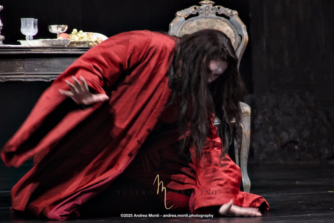 The lighting design by Patrick Meeus and the video design by Mario Spinaci created a dark overall mood without losing the play’s main characteristic: the alternation between drama and humour.