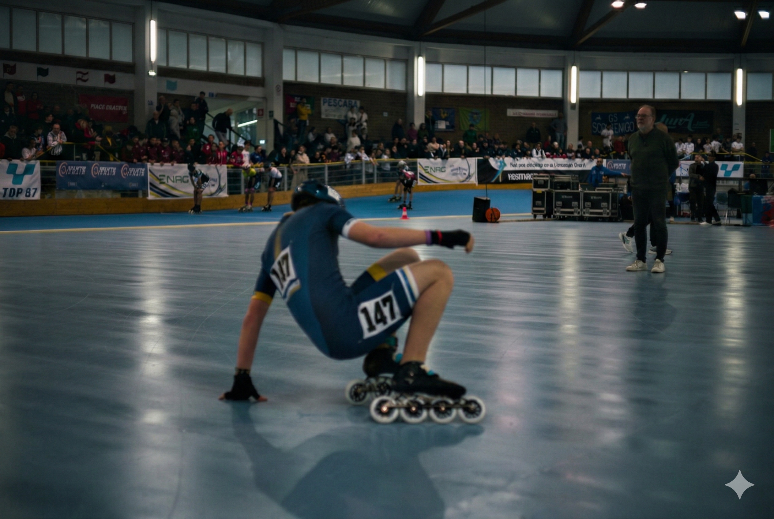 When on an assigment I often take with me a second camera with a vintage lens. This is a way to test old glasses along modern ones, without risking failure. Every now and then, therefore, I switch from the work gear to the personal one to give it a try. Sometimes I get good results, some other times I don’t, like in this shot taken during the 2026 Italian Skating Championship. As it is apparent, I misfocused the skater trying to get up, so the photo turned out as an egregious miss.