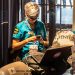 Technically, the exposure is very well judged. The sunlight streaming in from the right highlights the bass’s grain and colour without burning out the details, while the shadows cast by the metal rigging lend a welcome sense of depth. Focus is crisp, allowing both the wooden curves and the mechanical precision to be appreciated equally. The tonal balance between the warm timber and the cool blues of the robotic apparatus works to underscore the central theme: the collision of the organic and the engineered.